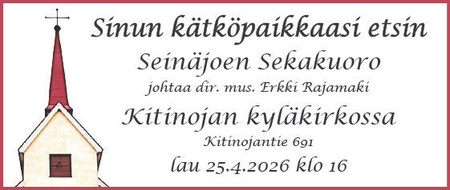 Seinäjoen Sekakuoro kokoontuu harjoituksiin Seinäjoen kansalaisopiston toimikaudella maanantaisin klo 18 Hyllykallion koulun musiikkiluokassa, Opintie 8, 60510 Hyllykallio.
